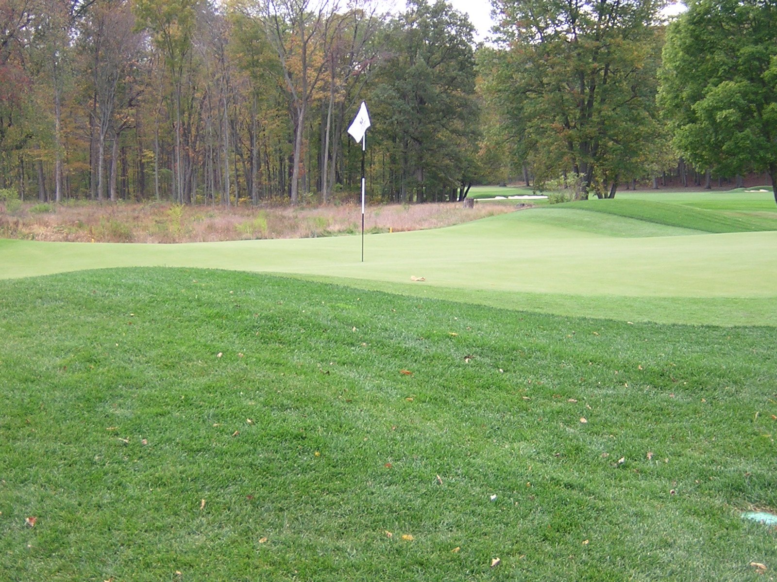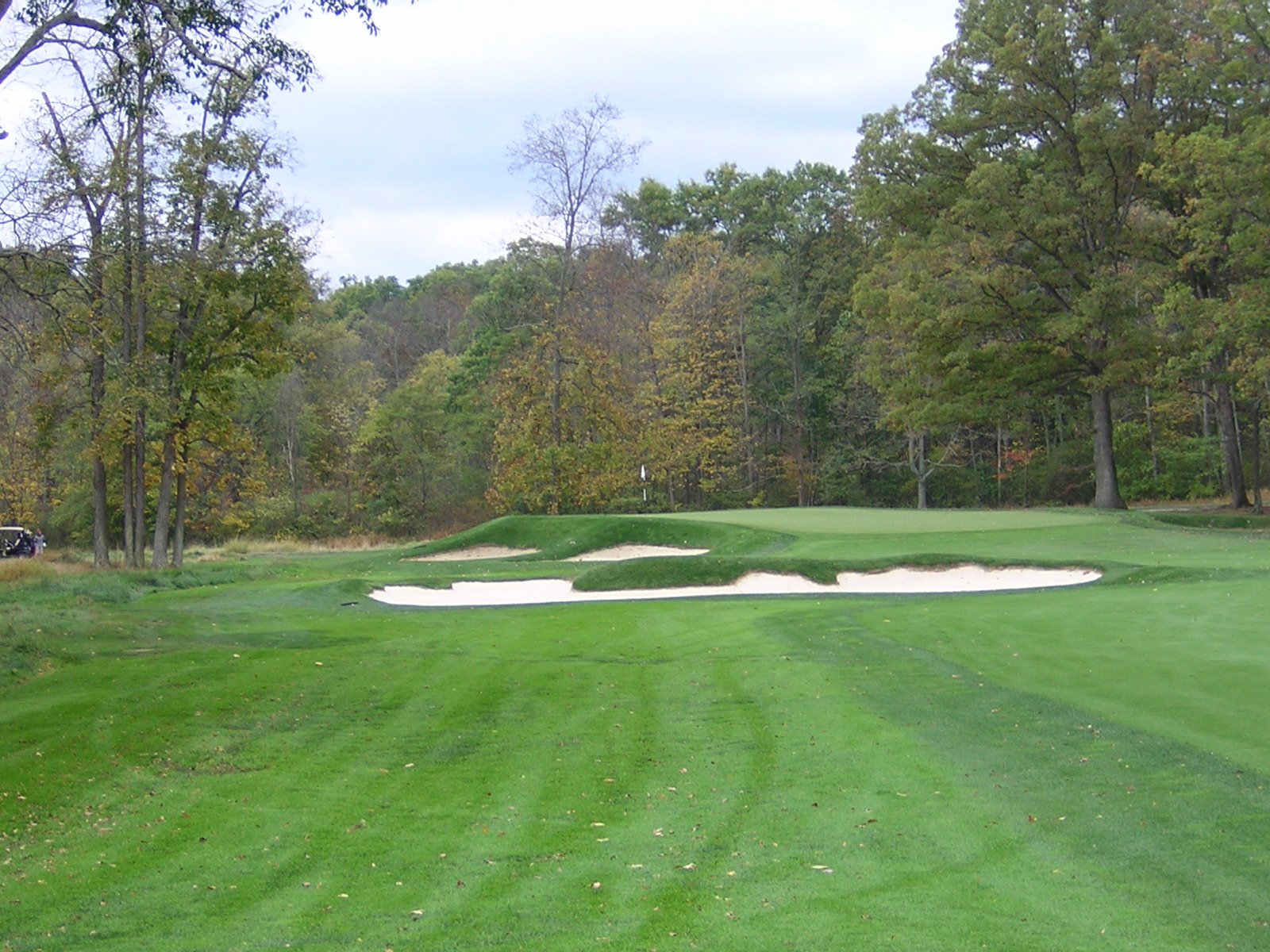 At 589 yards, the next hole is the "third" longest par five on the course. This straightaway three-shotter features a pair of original design bunkers, an S-shaped trap and a donut bunker, both down the left side. Both are indicative of the style of golf course architecture of the era. Usually into the wind, the third necessitates more placement than length, but at nearly 600 yards, brawn will be needed. The putting surface is long by course standards, with a large rise in the rear. A front-right pin can be very inviting, especially with a little wedge in hand. Use the rear swale to spin it close.