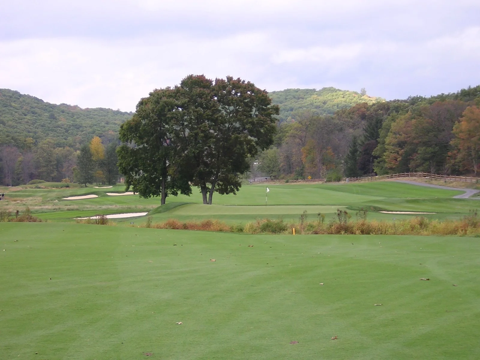 hole at Bedford Springs devoid of sand. Avoid the tree down the left and you'll have a simpler approach to an undulating green. Tricky mounding around the putting surface could make for a difficult pitch if you've missed the green.