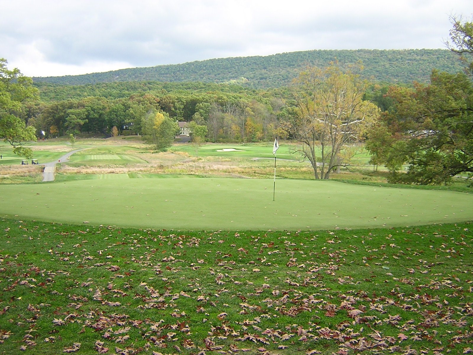 Talk about finishing with a view. The closing hole at Bedford Springs offers the golfer with a sensational glimpse of the Resort hotel and majestic Allegheny mountains. The 18th has been completely restored and is a wonderful end to a great round. The S-shaped fairway is woven in and around six fairway bunkers, including the 9-shaped trap on the left. At just 356 yards, keep the