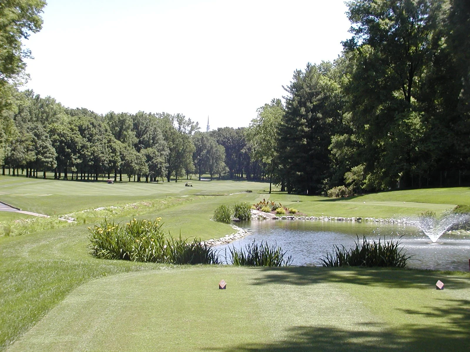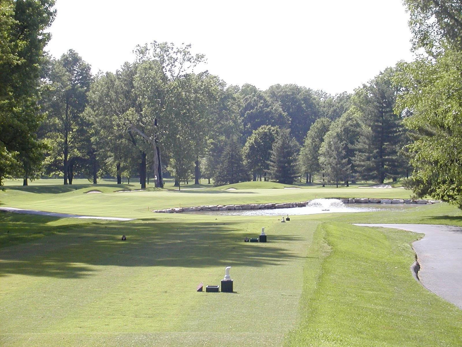 short-right by a pond and a creek. The putting surface slopes severely from left to right and is very difficult to two-putt. Sometimes, short and easy is just the opposite.
