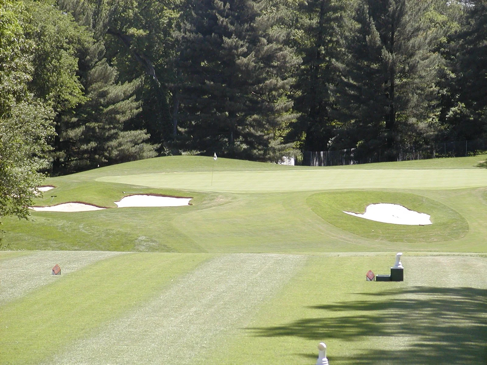 The fifth is a back-breaking, straight par four of 473 yards. A big tee shot is needed to leave a mid-to-long iron to an elevated, wide and narrow green. When Arnold Palmer played in the 1965 U.S. Open, he drove well right the first two days into a pond, making double-bogey and missing the cut for the first time in 91 tournaments. The putting surface is quite severe, especially if you're left and the pin is right. Two-putting with a 20-foot break would be quite miraculous.