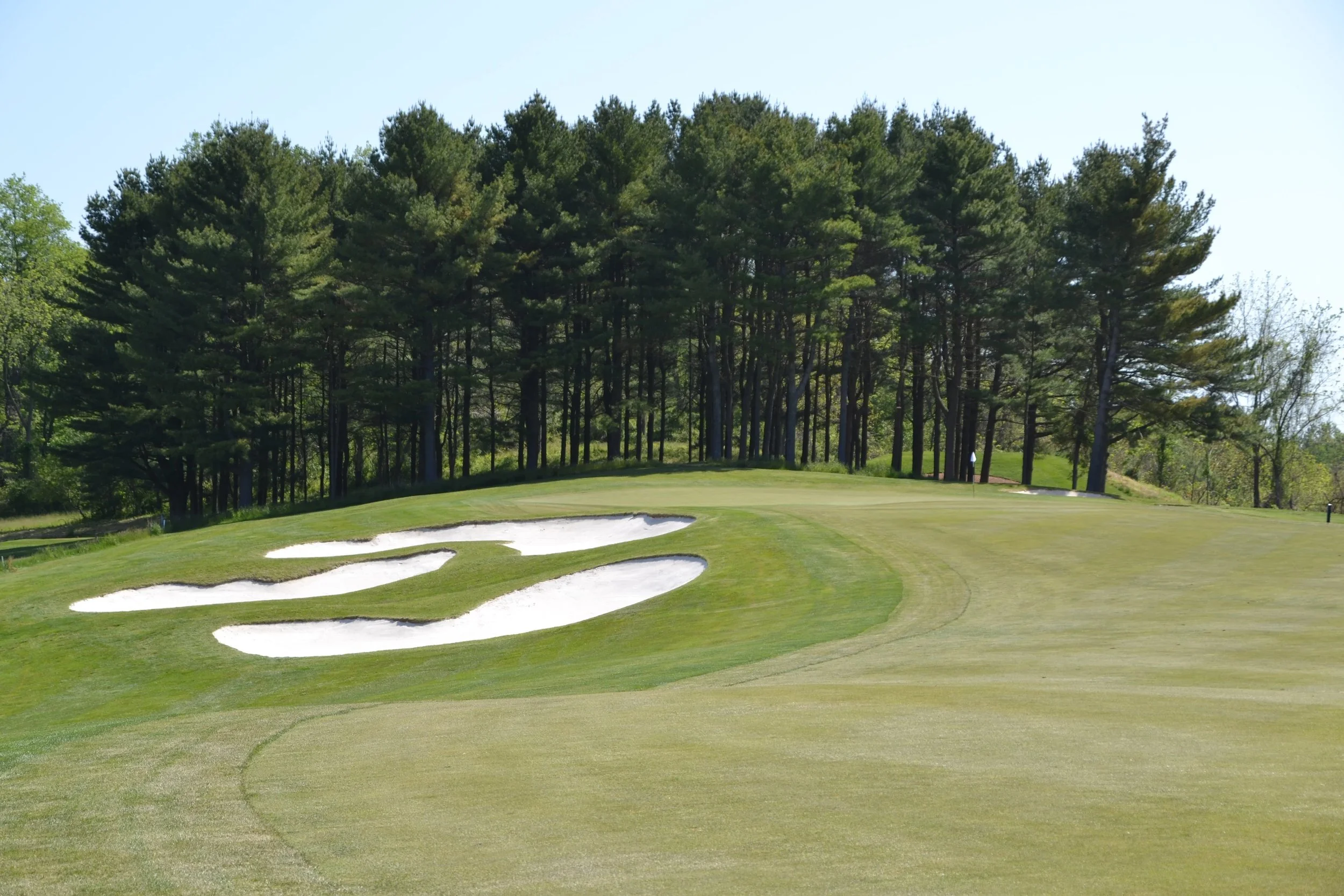 The inward nine opens easy enough with a downhill par four. However the green is most difficult and is fronted by a very deep cavernous bunker. The putting surface features a large hump in the center, making a two-putt strenuous.