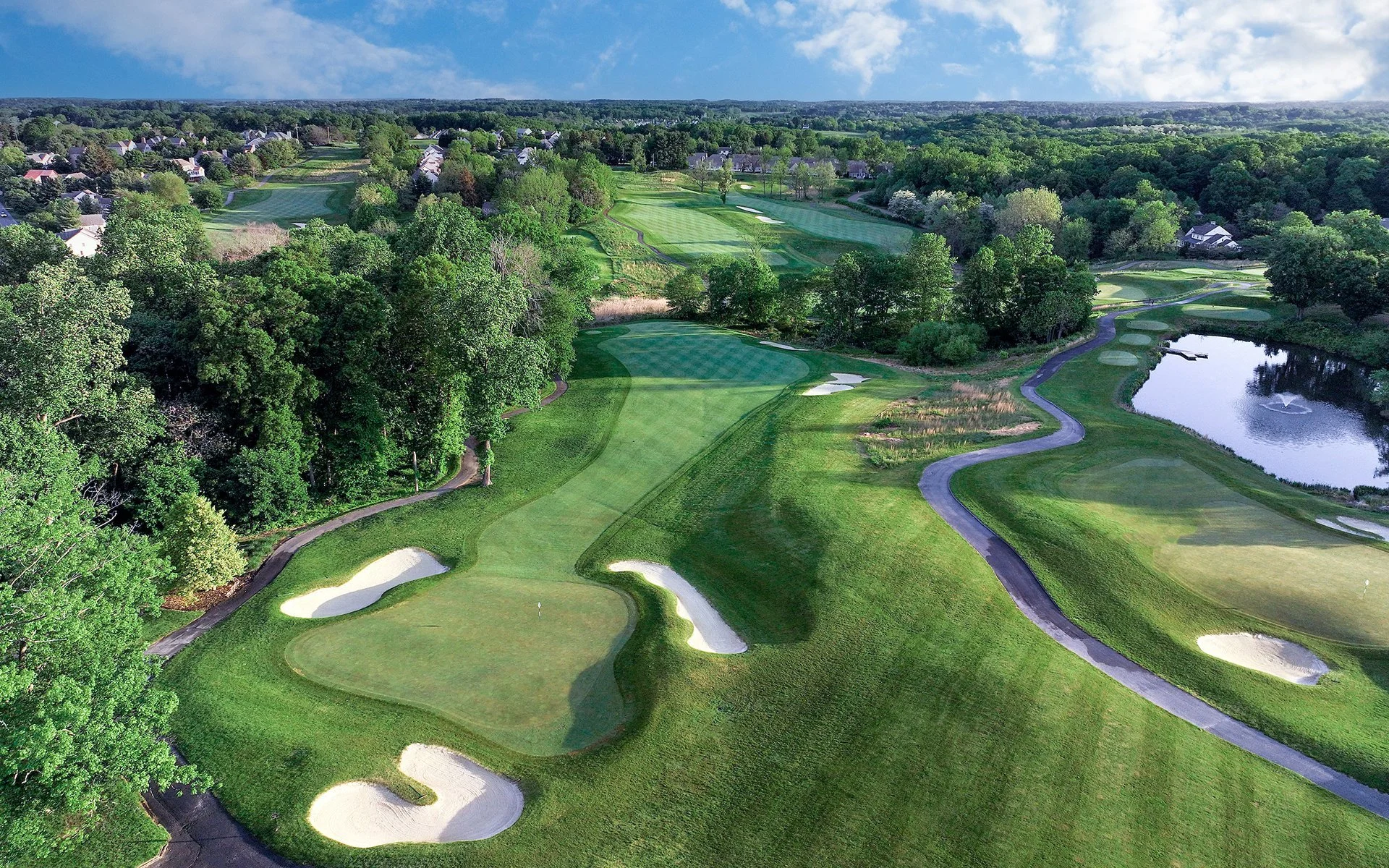 The 18th ranks as one of the best finishing holes in the area. The dog-leg right requires both accuracy and length off the tee. Your tee ball must favor the left side, as the hole is flanked right by
