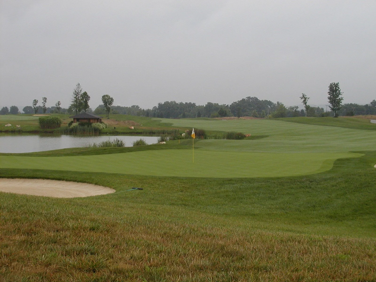 The signature hole is the downhill, par 3 eighth. From an elevated tee, the green is fronted by a pond, making club selection a difficult choice. Sand protects the right portion of the putting surface, while another trap guards the back. The green is very wide and slopes from right to left.