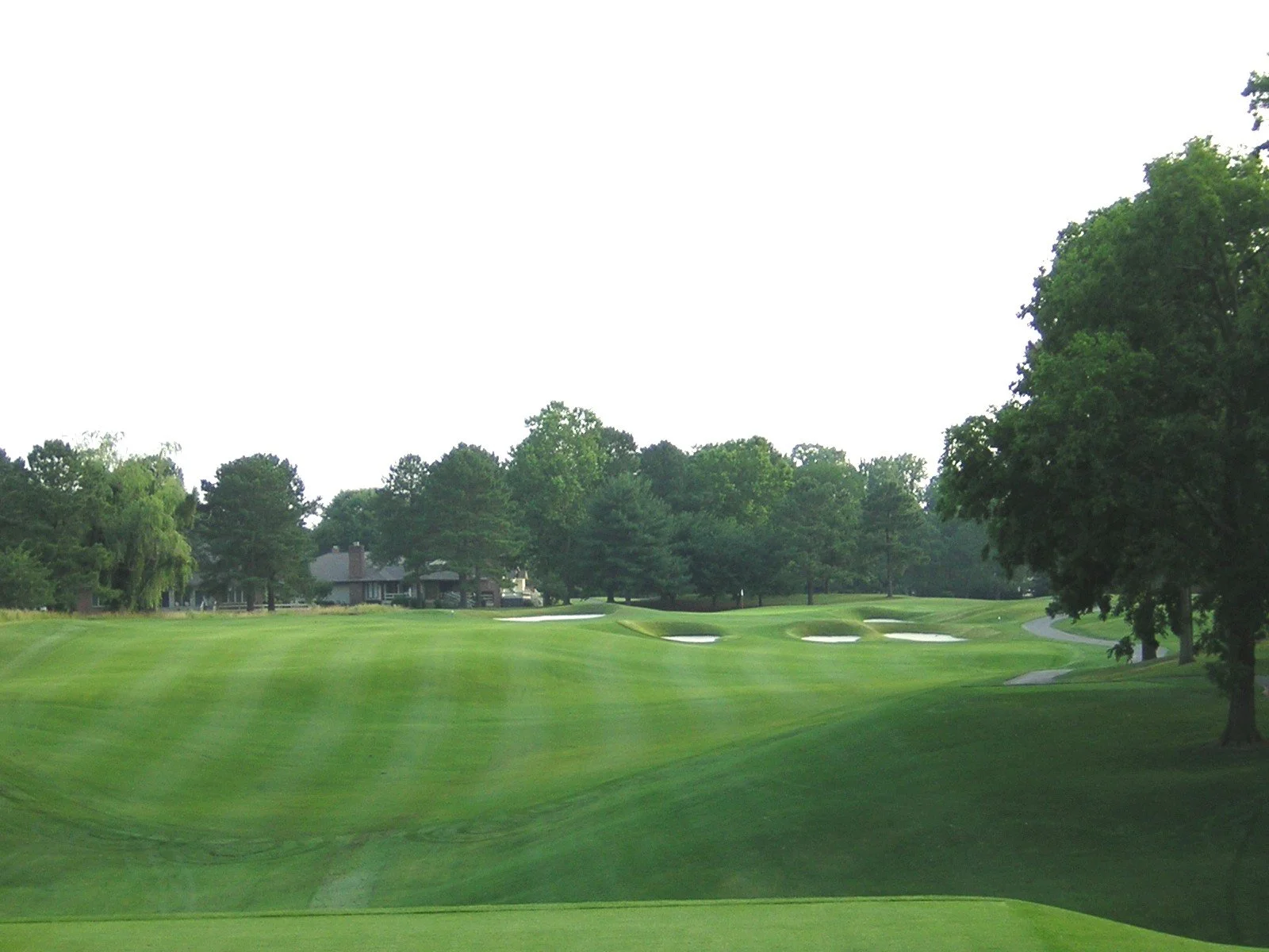 The opening nine closes with the longest par-four on the course, 467 whopping yards. The hole bends slightly to the left and requires a massive blast off the tee to have any shot at getting an iron on the ball. Sand left and right guards the landing area, but the difficulty arises by the green. The elevated surface is protected by a series of well-defined traps right, one short and one left. Any shot offline to the right will be well below the green, making for a difficult up-and-down. The kidney-shaped green is one of the longest on the course at 44 paces, making two-putting a real chore.