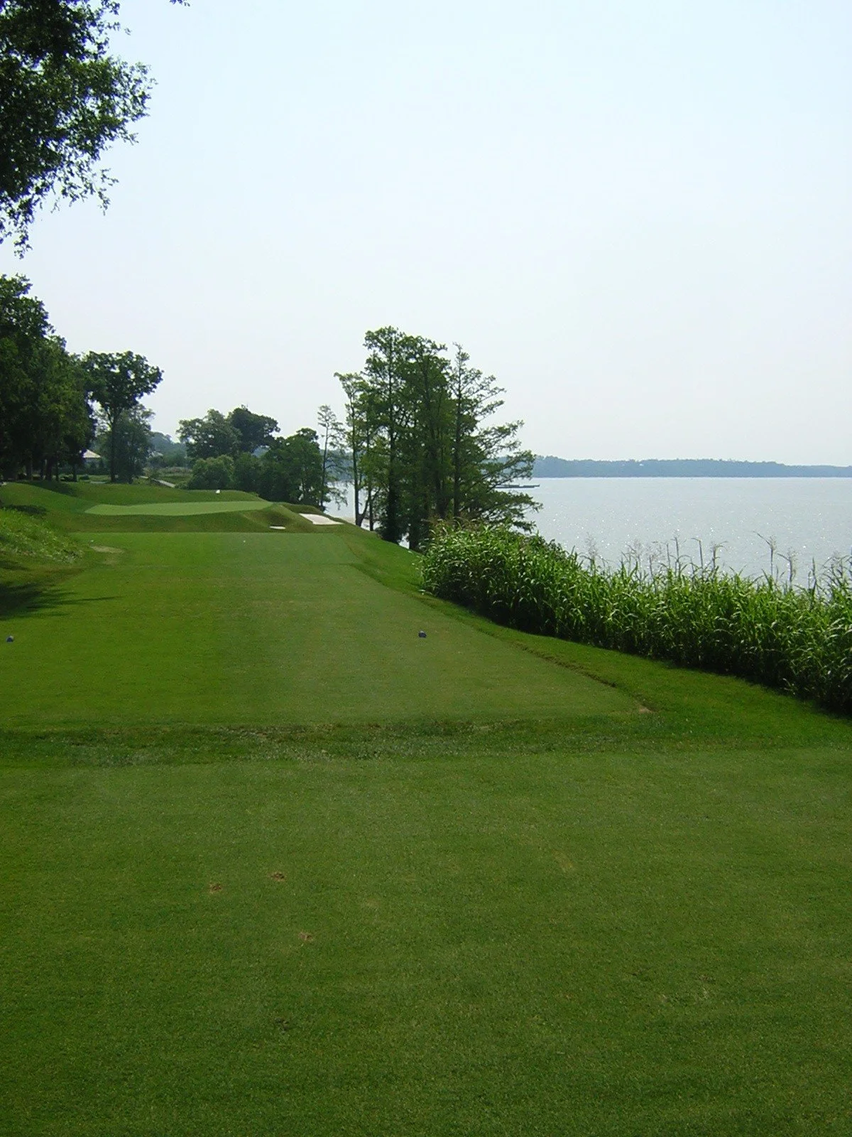 The most recognizable signature hole at Kingsmill is the par-three 17th. Along the banks of the James, this hole features the longest green on the course, some 50 yards in length and one of the widest. But don't let that fool you, as with the wind coming in from the left, this could play as one of the most difficult greens to hit. One pot bunker and one 30-yard trap guard the right side of the putting surface, while mounding left and deep frame the hole wonderfully. Three putting is a common occurrence, making club selection quite key.