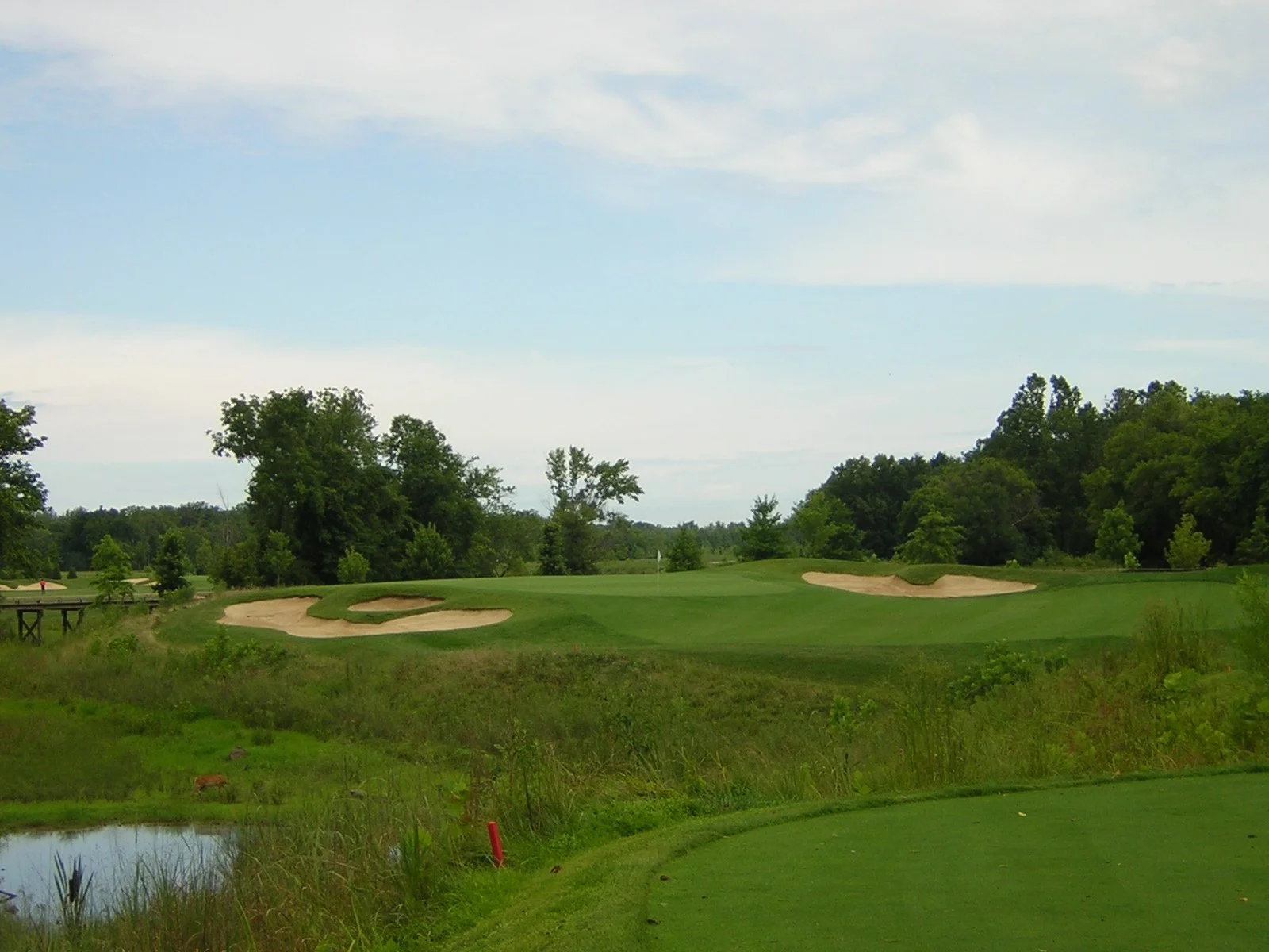the layup zone. Your approach must carry the wetlands to the green, but with a short iron, it should not be an issue. The kidney-shaped putting surface features three tiers and a handful of bunkers beyond the collection area. If I can make birdie, anyone can.