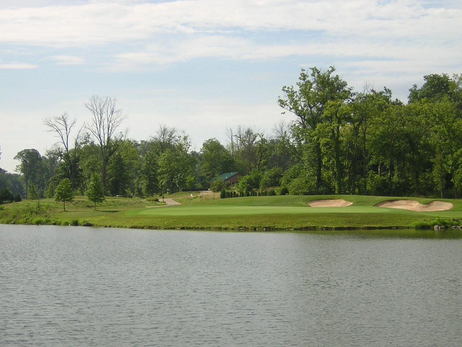 The original closing hole was a beautiful par three. At 247 yards, it's all carry over a lake that fronts the entire green. The putting surface is 40 paces wide and 31 paces deep, with plenty of undulations. The two bunkers behind the green serve more as targets than obstacles, however the chipping area beyond the green makes for a difficult up and down.