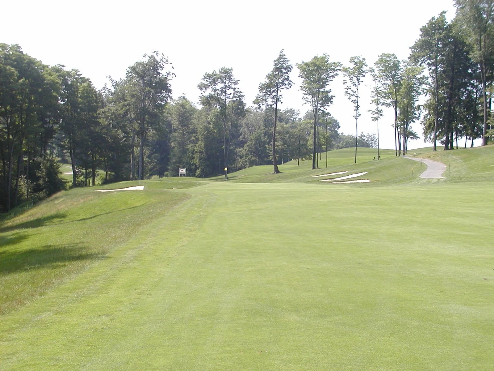 Although not considered the signature hole at Peek'n Peak, the seventh certainly has all the trimmings. The first shot on the 330-yard, dogleg left plays uphill to the landing area, as just a long-iron or fairway-metal is needed. The key here is to play right of the creek that runs the entire left side and be long enough to pass the tall trees, also on the left. This will leave just a wedge to a slightly, elevated green. The putting surface slopes from right to left, with a tier in the center and is quite fast. Birdies can be made, but par is a good score.