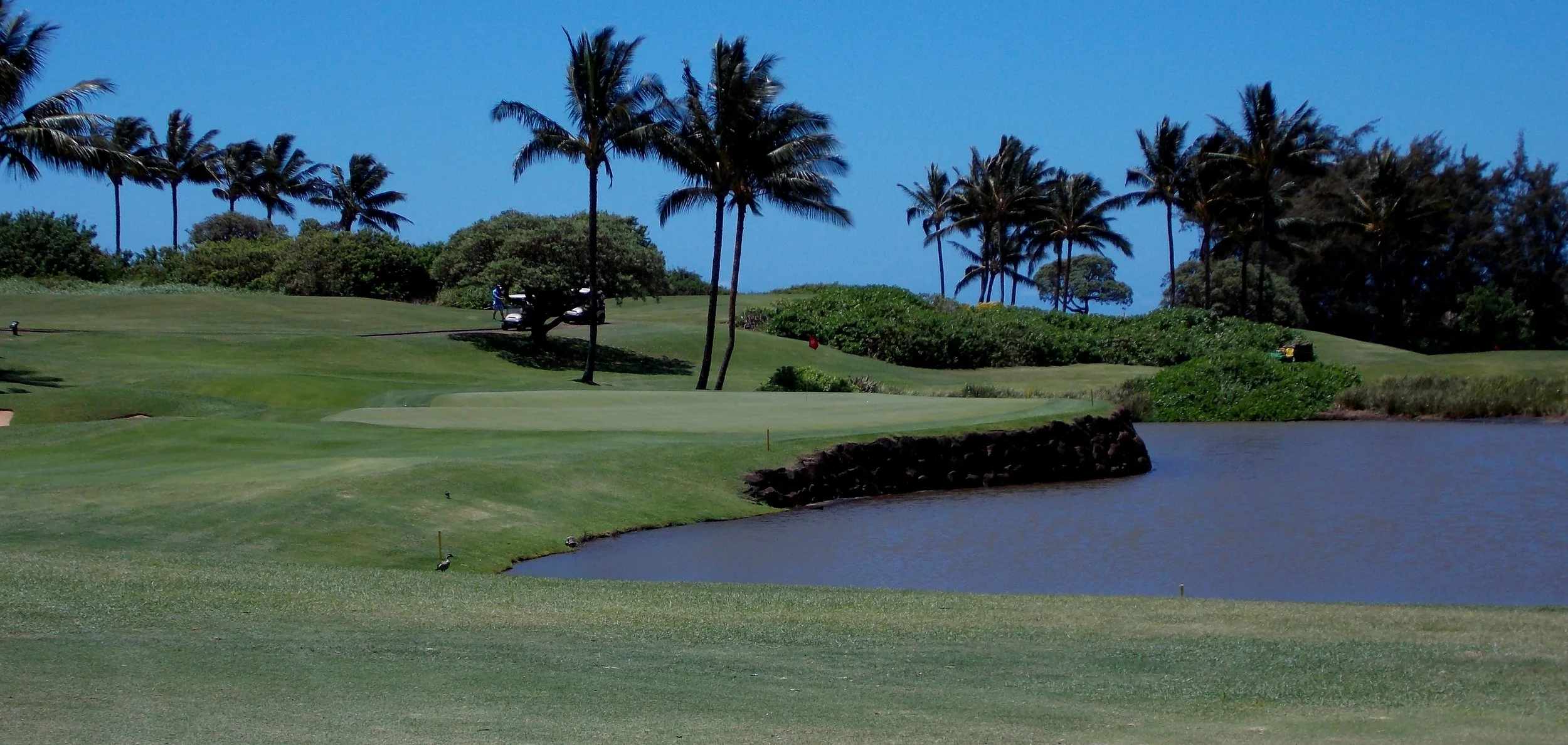 The final three areas where the remnants have been incorporated into the course are on holes 16-18. The 16th features a heiau, just short of the green on the left side, overlooking the Pacific Ocean, while the 17th hole sports another ancient structure next to the elevated tee and a stone wall down the right side of the cart path and through to the 18th tee.