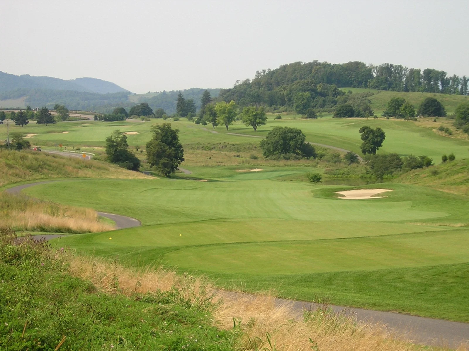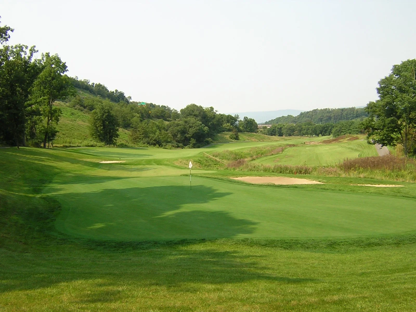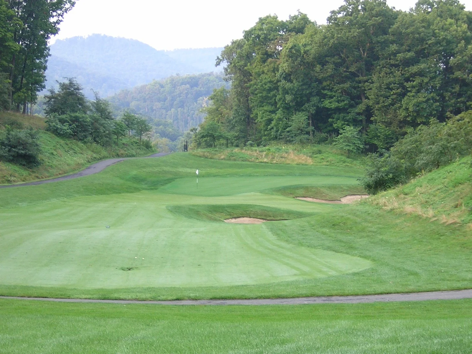 Built into the side of a hill, the 17th offers a great view of the mountain range and when the fall colors are flourishing, this is one spectacular sight. A long iron or hybrid will be needed to reach the promised land and when the pin is back and left, add another 20 plus yards to your total. Two deep bunkers guard the left side of the putting surface, making for a difficult up-and-down. The play, a nice, high draw to the right, two putts for three and move on.