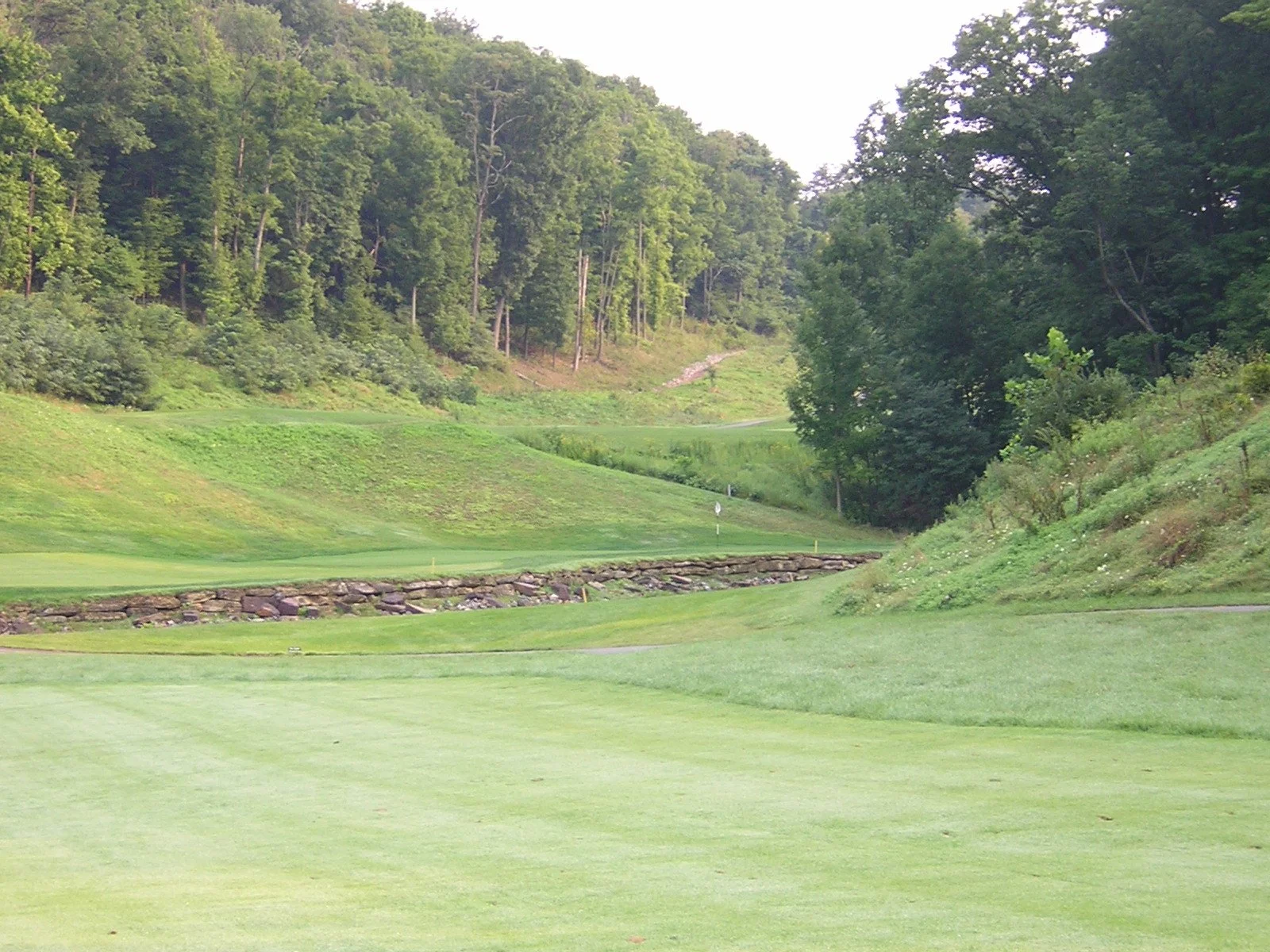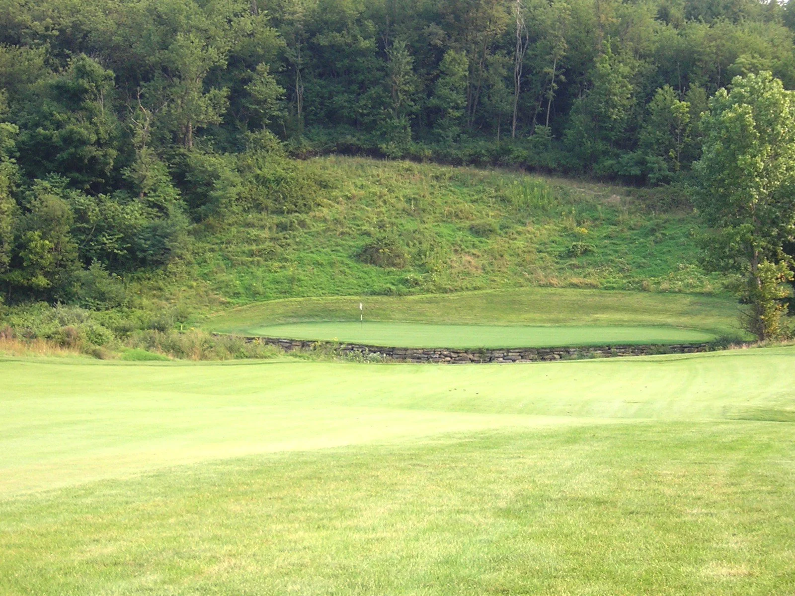 Talk about a premium on accuracy, the tee shot on the third could be the most difficult on the course. Carved into the side of a mountain, this par four is the number one handicap hole on the course and rightfully so. Downhill from the tee, a steeped ridge blankets the left side, while the uneven, hilly landscape guards the right. The deep rough covers for the lack of fairway bunkers, so you must keep it in the short grass. A fairway metal or hybrid will remain to a slightly elevated and sloping green. Stay below the hole and play left of the bunker to the right, as it makes for a very difficult up and down.