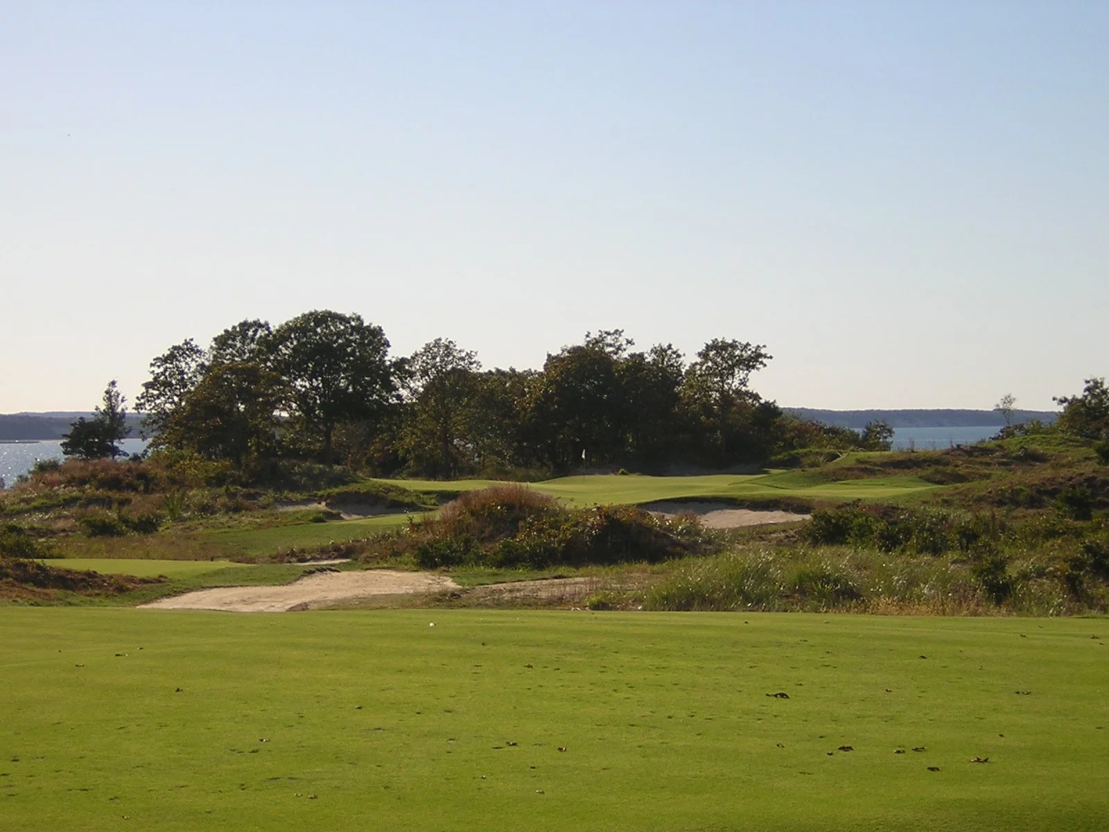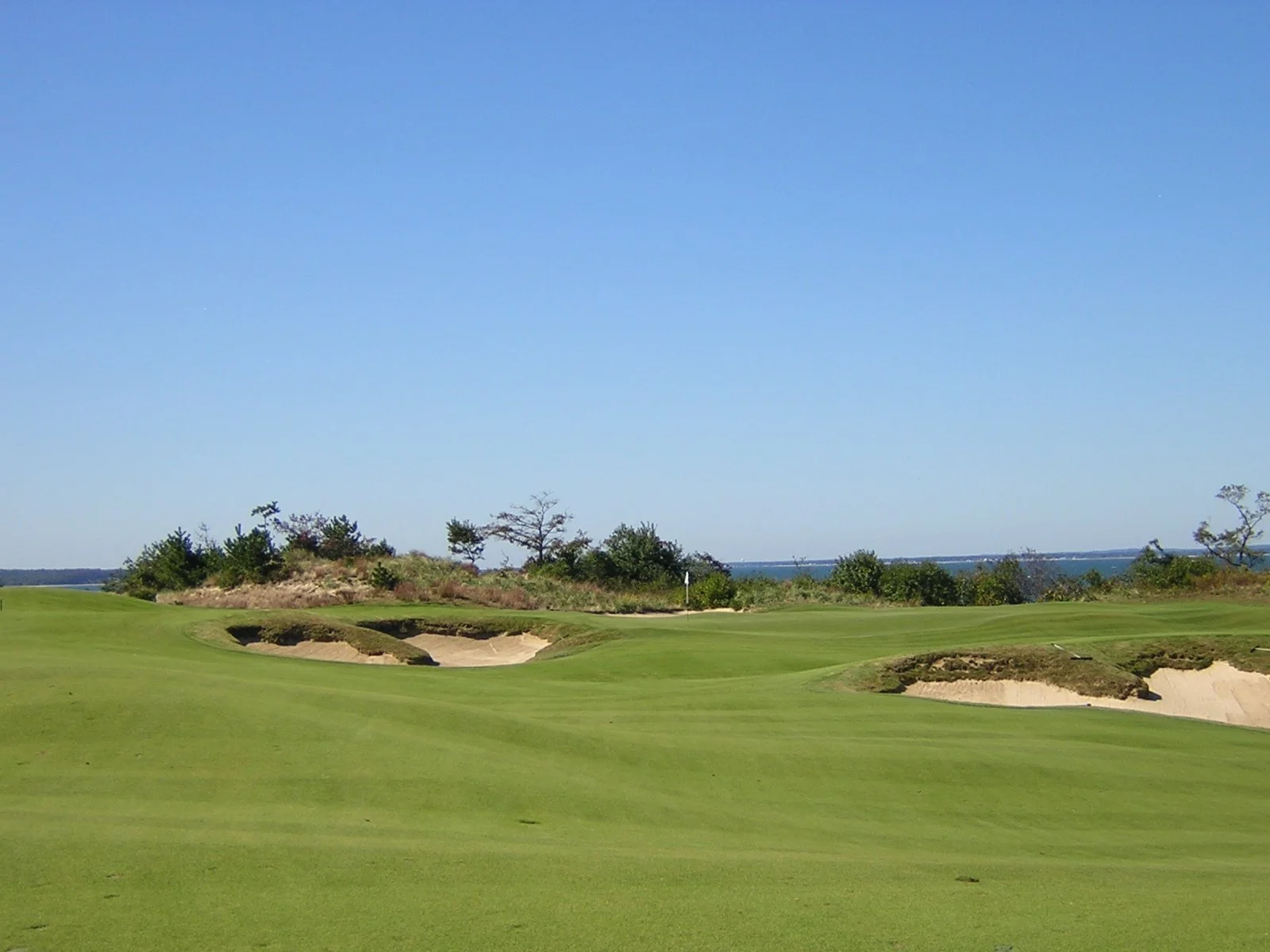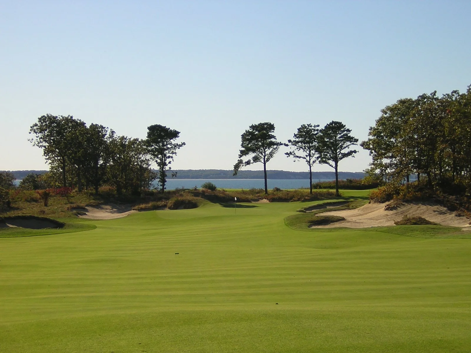 Slightly reminiscent of Pebble Beach, the closing hole features the coastline of Peconic Bay down the entire left side of the par five. From an elevated tee, the beauty of Sebonack lies in front of you. Your tee ball is fairly simple, as a very generous landing area awaits. Although more room to the left, it's best not to challenge the trouble that lies ahead. Certainly reachable with a helping breeze, you'll need to hopscotch past the trio of pot bunkers by the green. The putting surface has several slopes as it rolls toward the water. A back-left pin can be a great Sunday placement when the U.S. Women's Open comes to town.