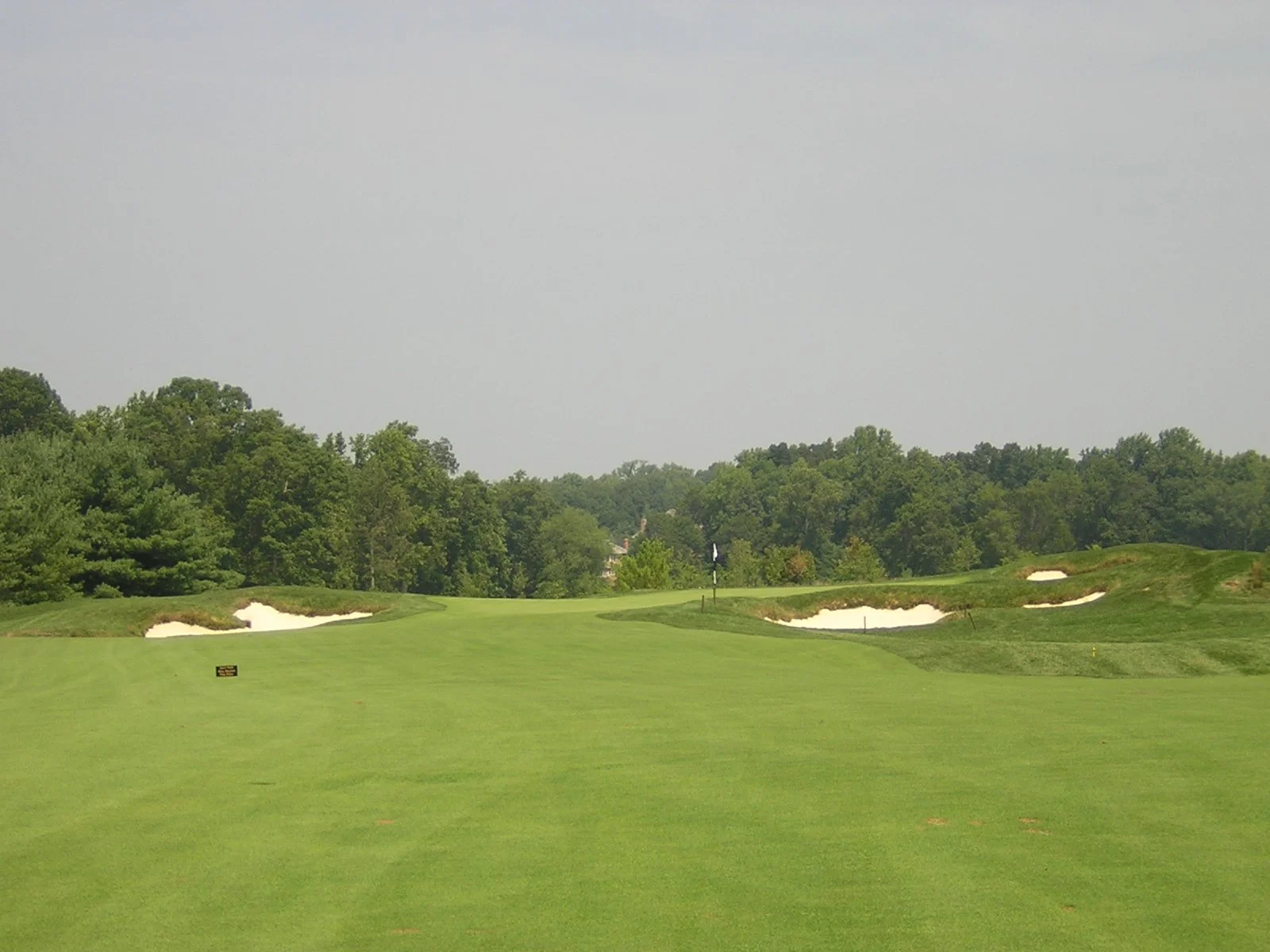 The final four-hole stretch starts off with a rugged par four of 490 yards, increased by 23 yards from the previous design. Playing uphill off the tee, a solid shot is needed to split the tree-lined fairway that funnels most shots towards the center. Now playing downhill from the fairway, a medium to long iron now remains to a very difficult, undulating green that slopes in several directions. Sand protrudes short and right of this slick putting surface with chipping areas in front and left.