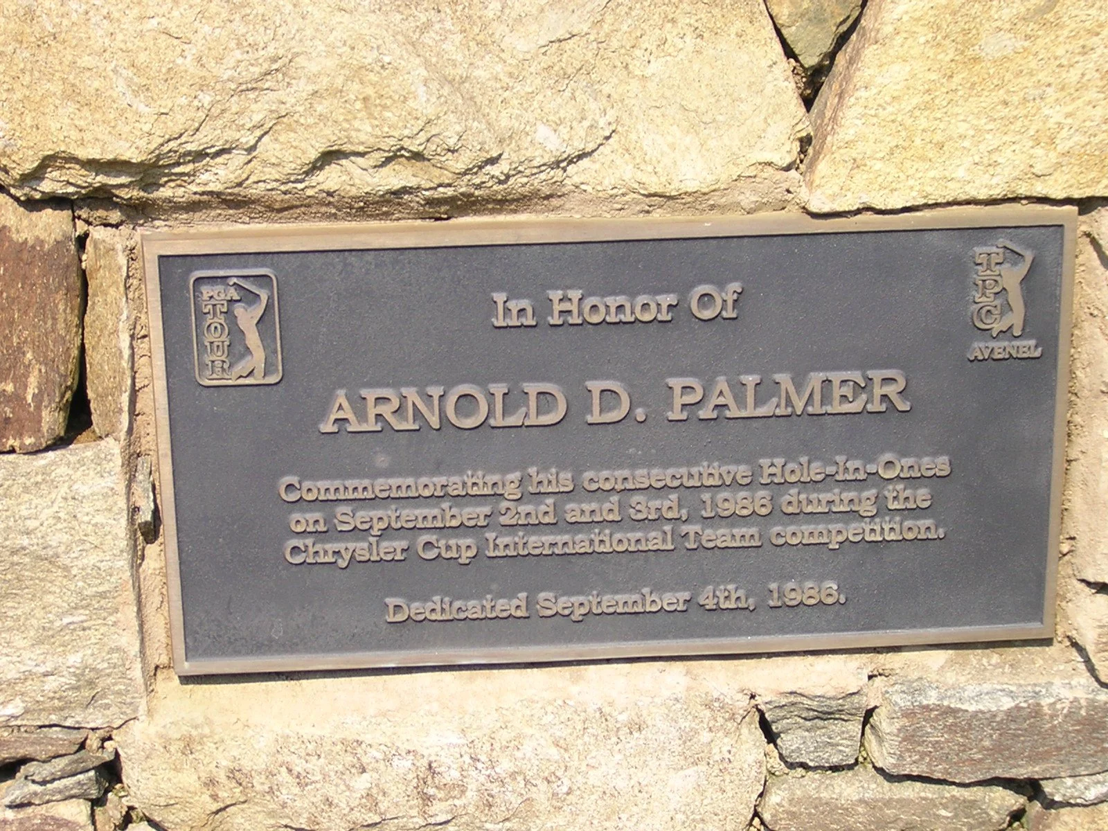 Avenel was a huge success as soon as it opened, well at least for Arnold Palmer. The "King" made back-to-back aces on the par-three third hole prior to the start of the 1986 Chrysler Cup. During a practice round on Tuesday, Palmer, the captain of the U.S. team, made a hole-in-one with a five-iron on the then 182-yard hole. The next day was the pro-amateur event and Palmer, again using a five-iron, made a one -- the first time that back-to-back aces were recorded on any professional tour. Just an FYI: Palmer missed the green during the opening round of the event as he tried for three straight.