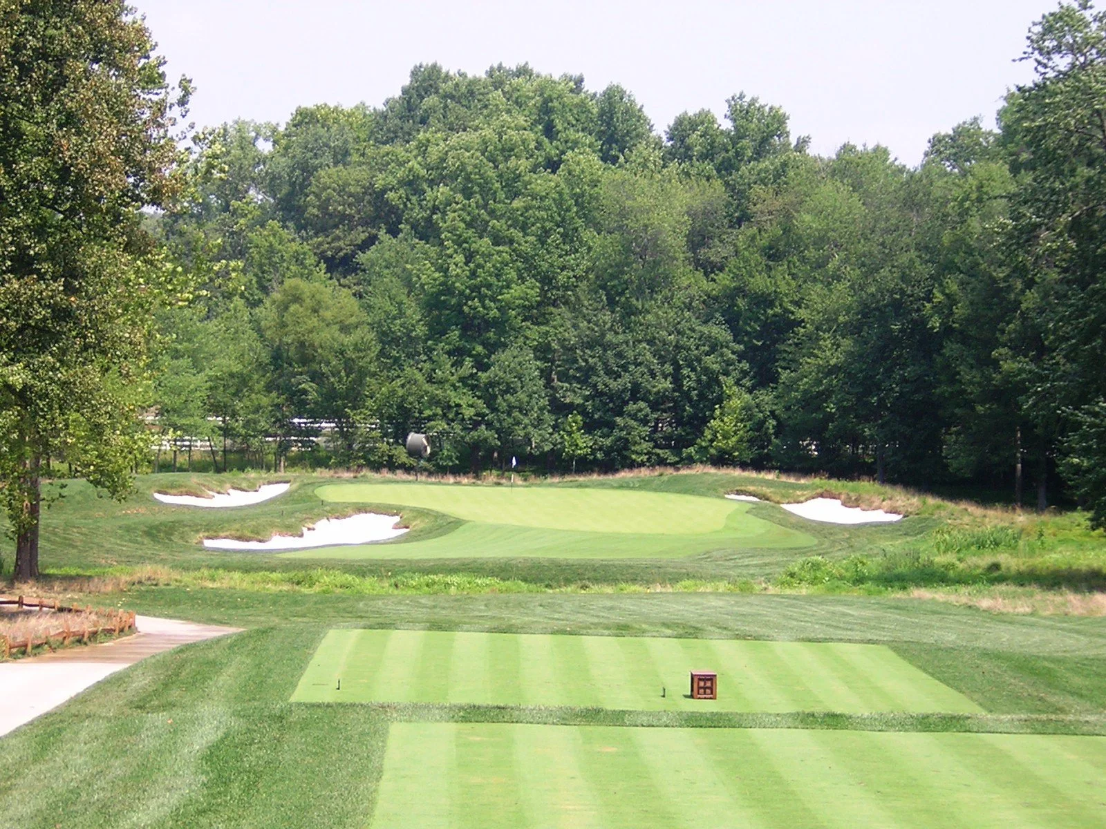 a well-guarded green. The putting surface, now 20 yards further back, slopes from back to front, with sand now right and a grass hollow to the left. Talk about pinpoint accuracy, the green is just 29 paces, making it the second smallest on the course. During the 2010 Senior Players Championship, the fourth played as the most difficult for the week with an average score of 4.413.