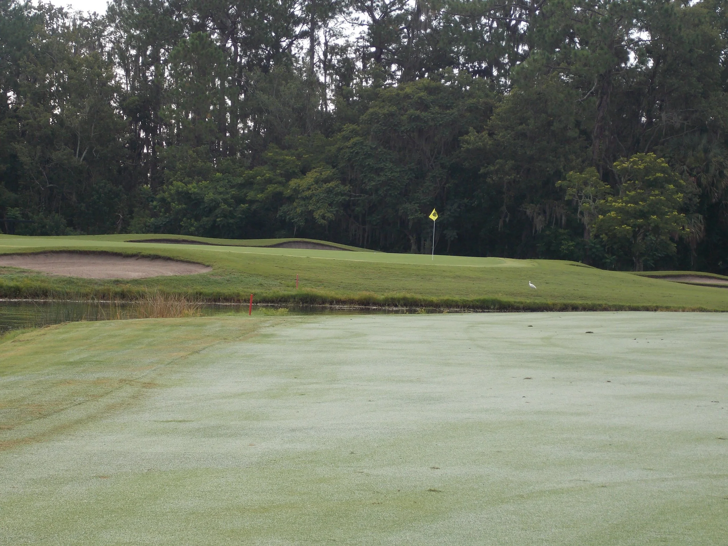 The 13th and 14th holes are two examples of Disney risk-reward. Just 364 yards, the 13th is a sharp dogleg right over water and trees as players try to cut the corner leaving a short approach. The par-five 14th can make or break your round, as Disney's golf version of Waterworld comes into play throughout the hole. Players must negotiate water right off the tee and then left and through the green in an attempt to make birdie. Misfire slightly and it's a watery grave for your Titleist.