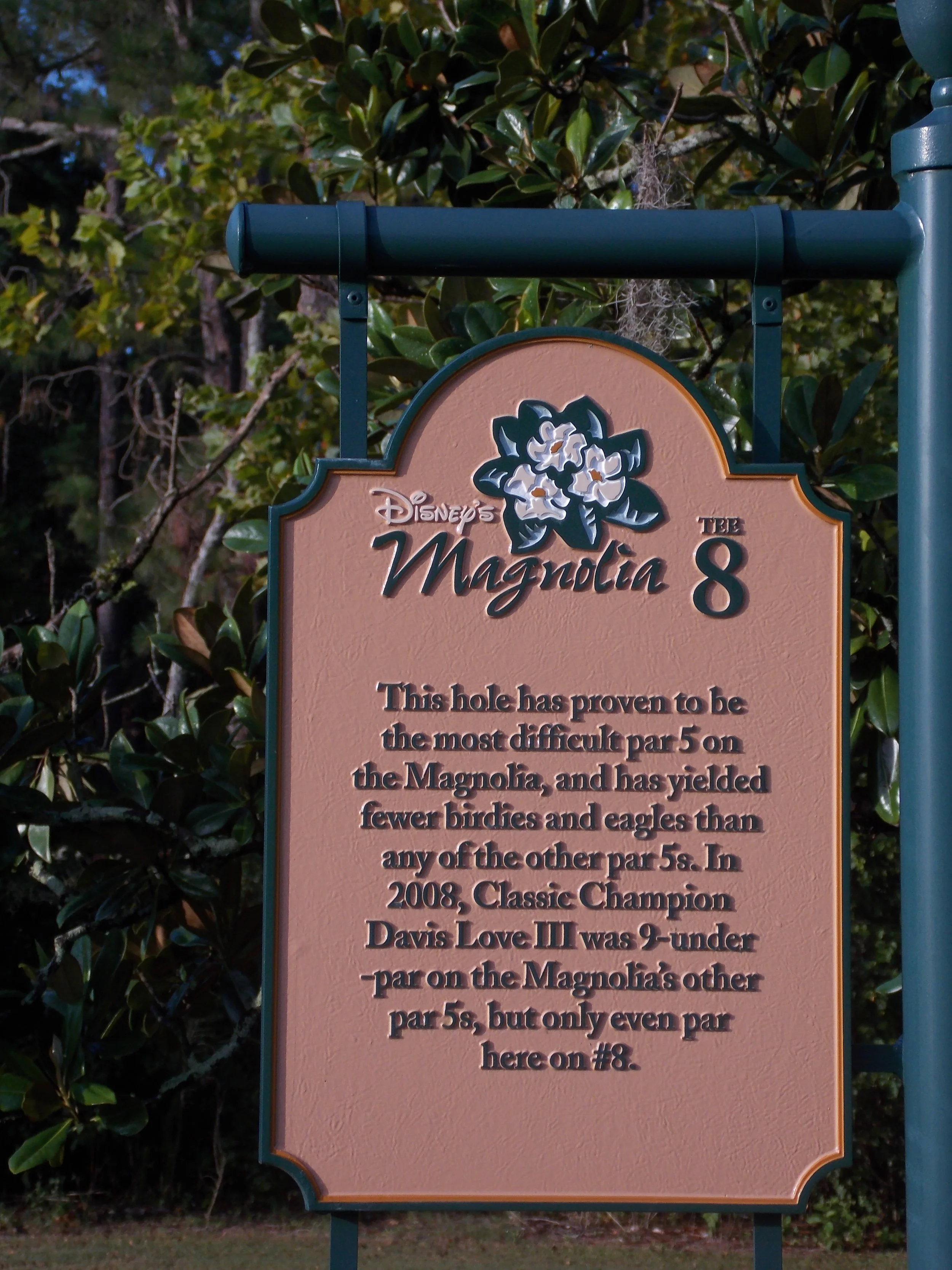 Only the strong will survive playing this course from the tips so choose wisely on the first tee and forget about trying to impress the rest of the group. With 98 bunkers and multiple water hazards, the Magnolia is definitely the most difficult of the Disney golf adventure so finishing with a quality score will make your experience most rewarding and provide a card ready to be framed and hung in the den.