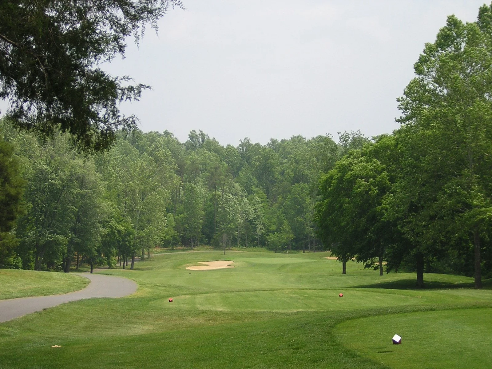 The Monocan nine opens with a dogleg-left par-5 stretching 570 yards from the tips. Avoiding the fairway bunkers on either side of the landing area off the tee is a must to have any shot at getting home in two. Your second shot plays downhill toward a green that's surrounded by numerous bunkers, not to mention the creek that fronts the putting surface. A spine in the center of the green can thwart your shot at birdie, but par is not a bad score.