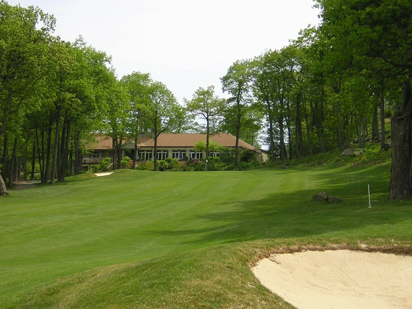The opening hole is a dogleg right par-4 of medium length that sweeps downhill from the fairway. The key is a tee shot that must stay clear of the sloping mounds to the left of the landing area, as all balls are kicked into the trees. The approach to the green is fairly open, but gaping bunkers around the putting surface await.