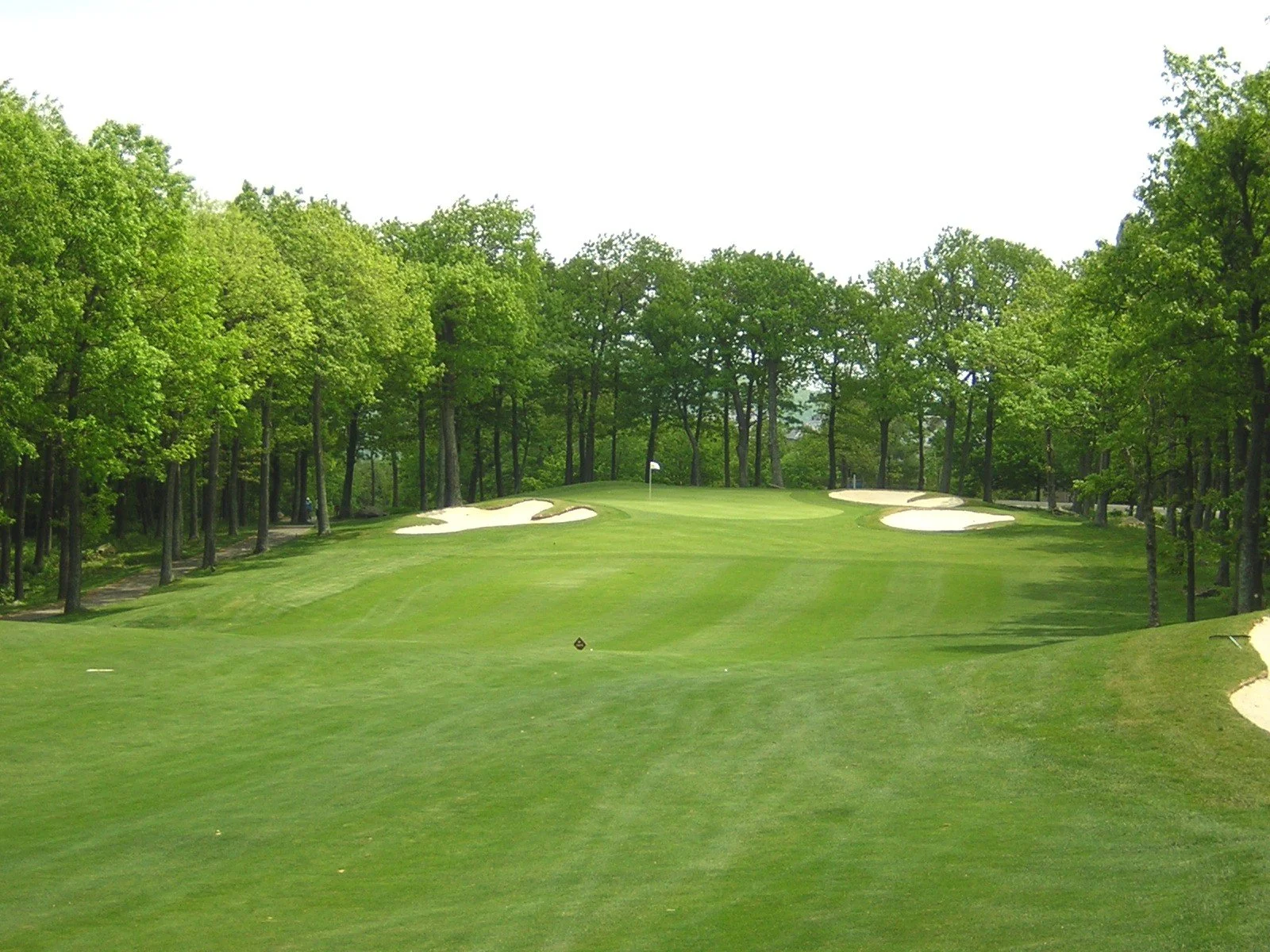 The first par-3 on the Tuckahoe nine, the fourth is a beauty. Recently increased to a massive 226 yards, this one-shotter requires pinpoint accuracy, as the putting surface is quite narrow and long. Sand on the right and wetlands and slope left certainly put extra pressure on the tee shot. The raised putting surface falls off to the left and rear, making for a difficult up-and-down. A three here will go a long way on the scorecard.